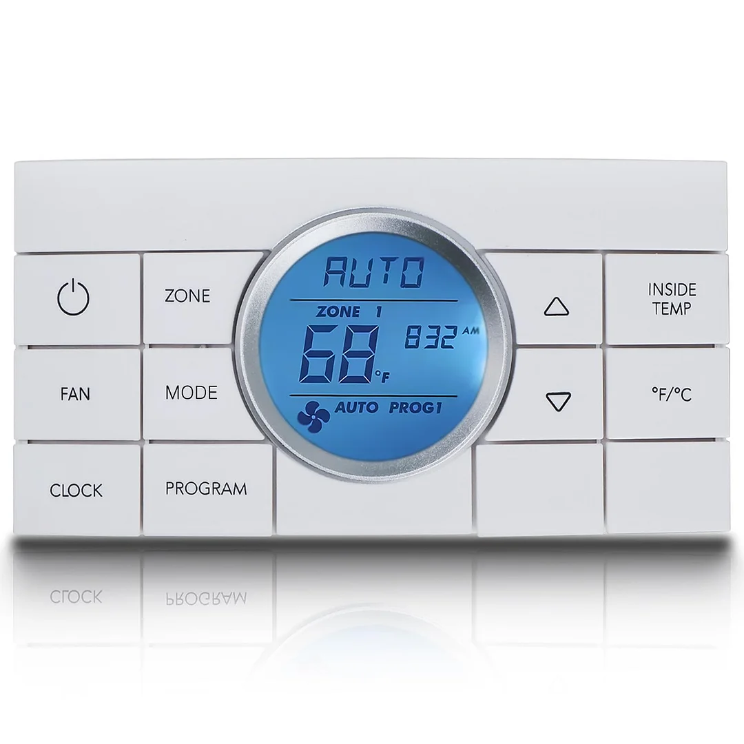 [Specifications]: ?Color: White; ?Temperature range: 40°F to 90°F; ?Voltage: 12V DC; ?Material: Plastics; ?Control buttons: 10; ?Bluetooth: NO; ?Model: Thermostat CCC2; ?Programmable: YES