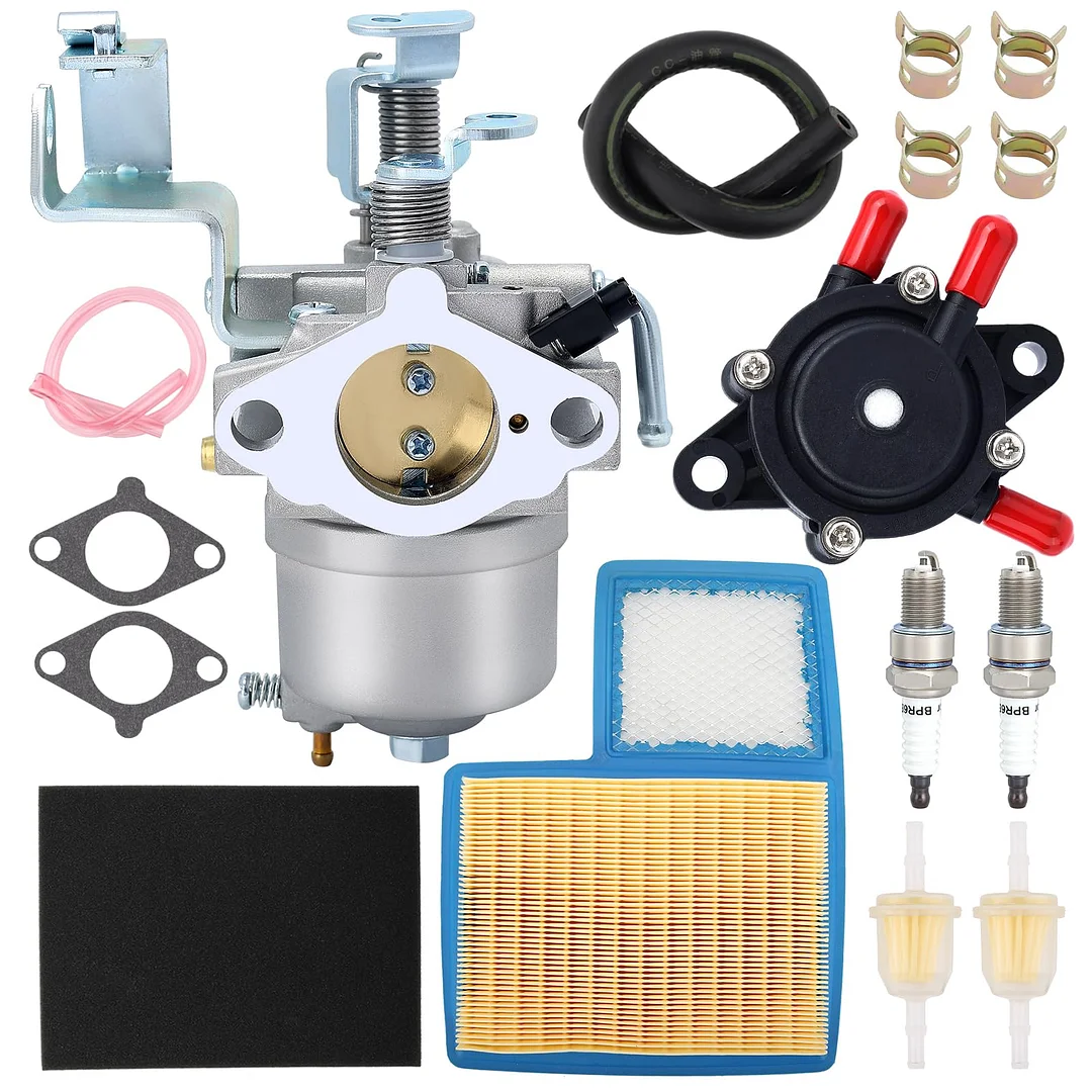 Package include: 1x carburetor & fuel line & gasket + 1x air filter + 1x pre filter + 2x fuel filter + 2x spark plug + 2feet fuel line + 4x clip + 1x fuel pump