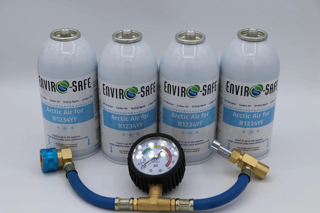 NOTE: It features a 134a piercing style top on the can, requiring the correct tap/hose for use. DESCRIPTION * Kit includes: * Arctic Air for 1234yf * 1 each #3600 134a can tap to 1234yf vehicle end hose * Aerosol * This product is a combination of 2 Enviro-Safe products into 1 for maximum cooling performance. This will remove moisture in the A/C system. Moisture can cause corrosion in the A/C system or the A/C to freeze up. * The other part of the product will reduce friction in system and provide colder air duct temps in most cases. * Compatible with any automotive refrigerant except ammonia and CO2 * Drying agent * Colder air * Longer life * A/C Booster * DO NOT use in ammonia systems * DO NOT use in CO2 systems * Cannot be sent to Alaska or Hawaii or exported to foreign countries except in pallet quantities * Gas propelled * Installs the same way as refrigerant * Cannot be added to a fully charged system DIRECTIONS FOR USE: Read and understand all warnings and directions before use. As per use with any ?ammable substance, take adequate precautions during use. ?1. Shake can well. ?2. Install can tap valve and charging hose. ?3. Install charging hose on low pressure side ONLY ?4. Invert can. ?5. Install all product from can ?6. Operate system for thirty (30) minutes with air conditioning system operating at normal temperature. ?7. For systems containing excessive moisture, ProDry may be required in addition to Arctic Air.?8. Discard empty can according to all rules and regulations for disposal in your area. These are 4oz cans.