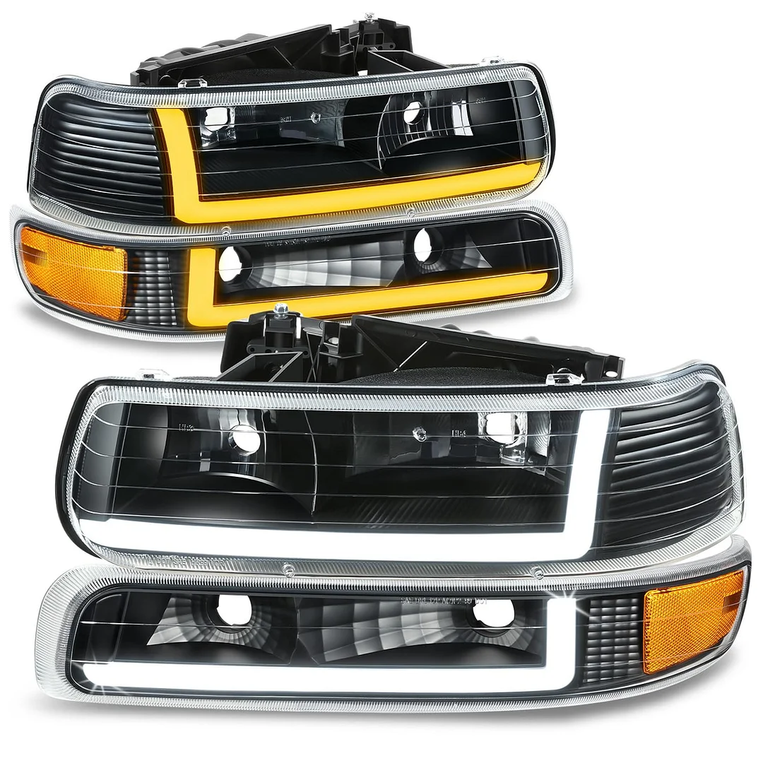 Brighter Illumination - Come with set of [2] headlights and [2] bumper lamps with 3-stage boot up sequential amber LED daytime running light and chasing style switchback amber LED turn signal, can make the replacement and refresh the appearance of vehicle with a visually striking presence and improve visibility.