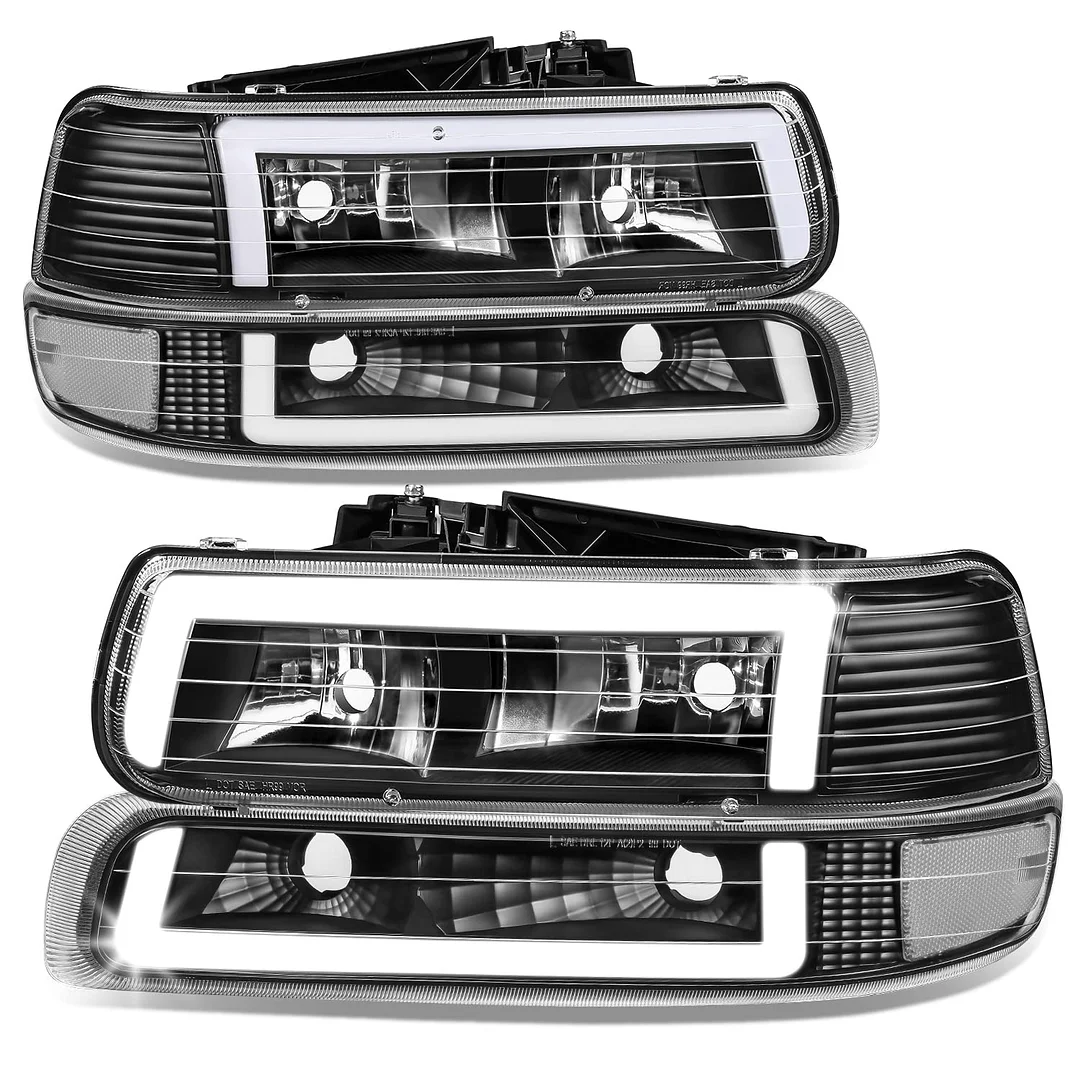 Best Replacement - Come with set of [2] headlights with L-pattern LED day time running light and [2] bumper lights with turn signal and LED side marker, can replace the old or damaged one for refresh appearance of vehicle with a visually striking presence.