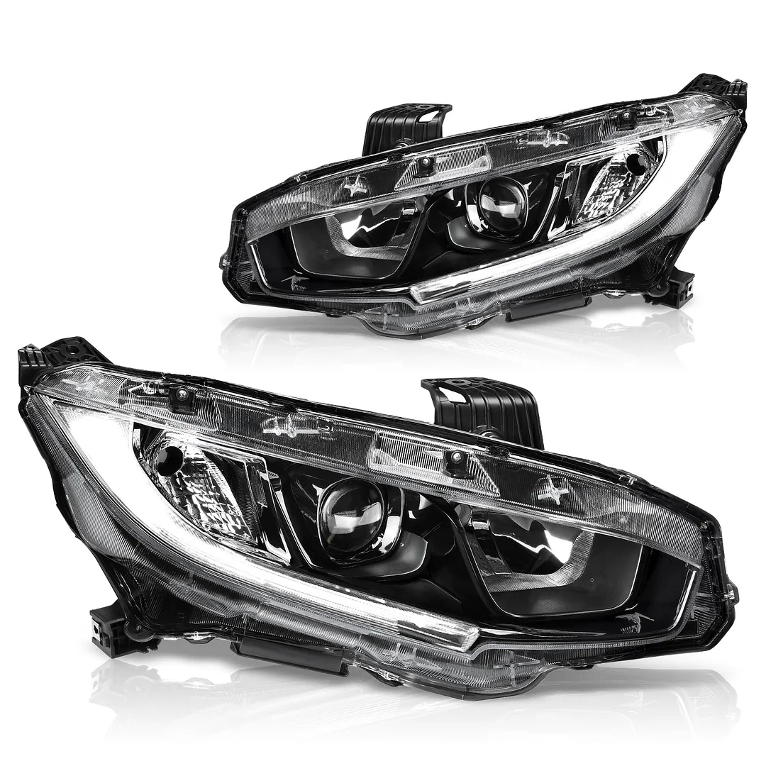 Compatibility: the headlight assemblies are compatible with 2016 2017 2018 2019 2020 2021 Civic 16 17 18 19 20 21; High Beam: HB3 / Low Beam: H11; bulbs are not included