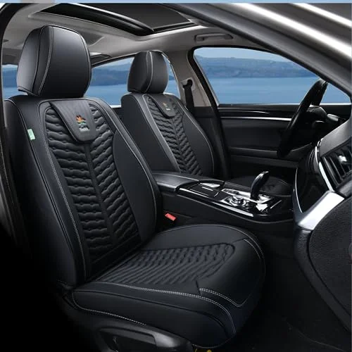 FLORICH Front Seat Covers, Luxury Seat Covers 2PCS, Breathable Leather Seat Protectors, Auto Driver Seat Cover Accessories for Trucks SUV Sedans-Black&White Line