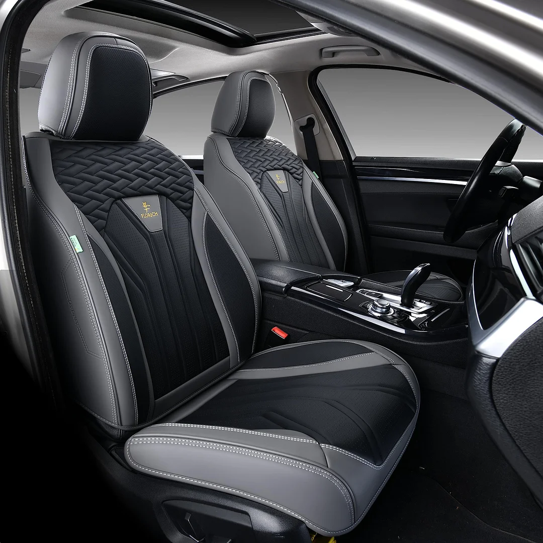 FLORICH Seat Covers for Cars, Waterproof Seat Covers, Leather Car Seat Covers 2 Pack, Universal Seat Cushion Protector for Most Cars Trucks SUV-Gray&Black