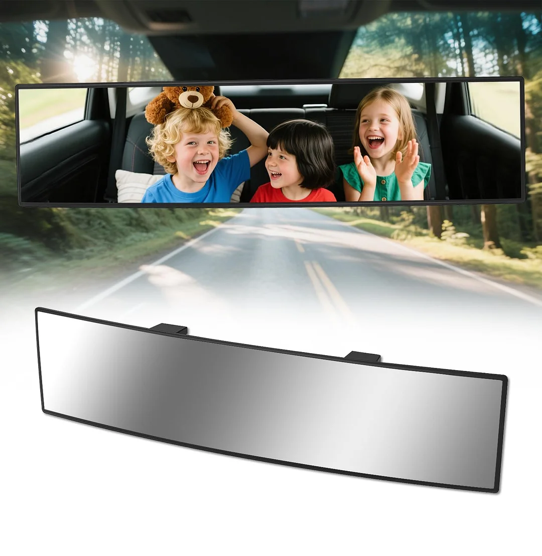 HmmtyRack Rear View Mirror, Chrome Anti-glare Panoramic Rear Mirrors Universal 14 Inch Convex Car Interior Clip on Extra Big Wide Angle Rearview Mirror Extender to Reduce Blind Spot for Car SUV Trucks