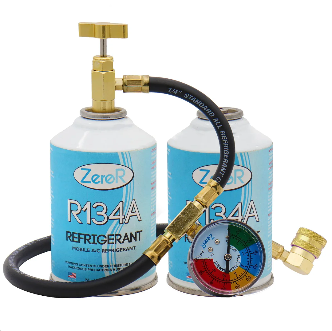 ZeroR AC Refrigerant Kit | 24oz of R134a + Can Tap & Gauge | 2 Cans for AC Recharging